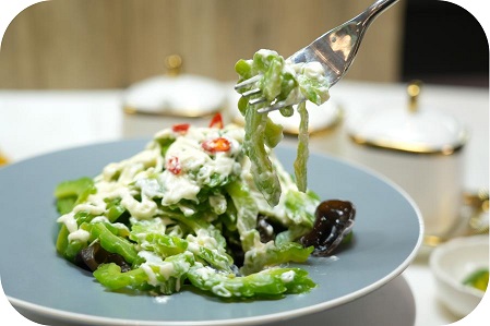 食評(píng):杜阮涼瓜產(chǎn)自江門(mén),因其瓜型平頂粒粗,粵語(yǔ)里也叫“雷公鑿”。適逢涼瓜當(dāng)造,搭配木耳,混合青芥辣和沙拉醬來(lái)做涼拌,讓口感更富有層次,甘中帶甜之余,青芥辣也將自身辣味和食材的清爽帶入鼻中,正適宜清熱消暑。